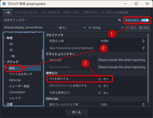Godotの標準の機能で、フレームレートを確認する方法があります。